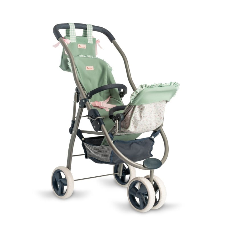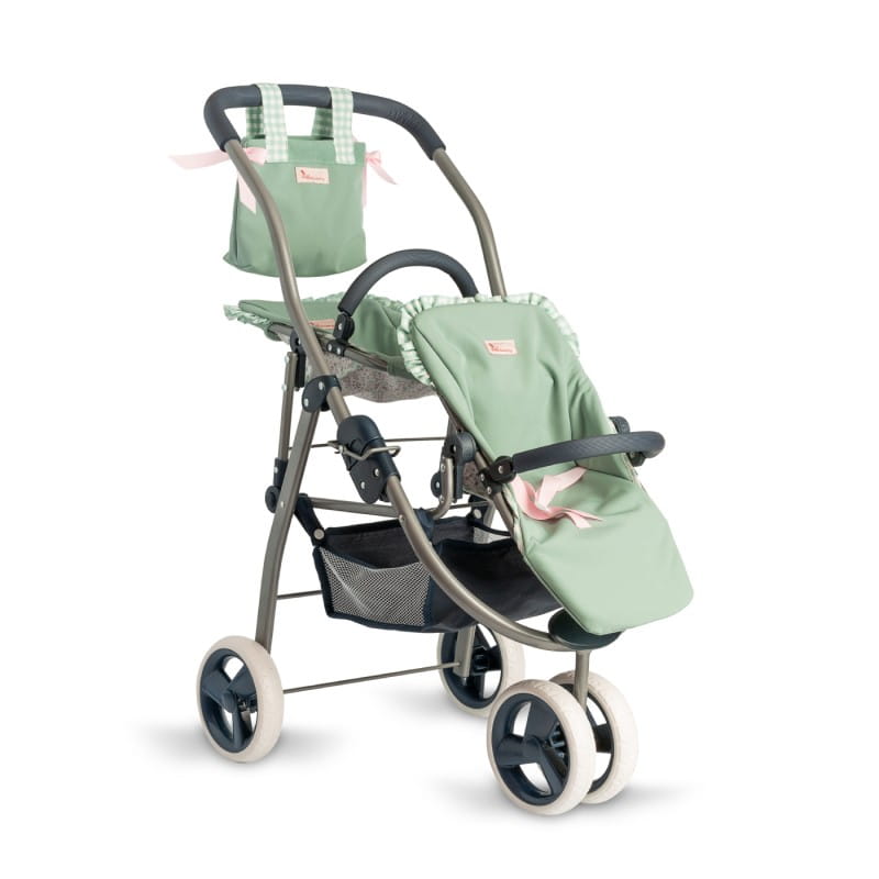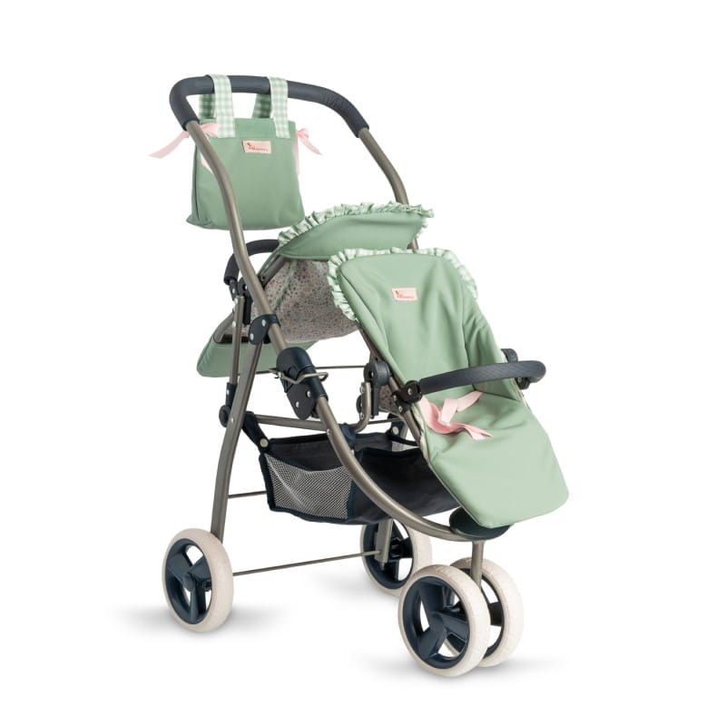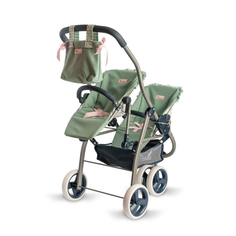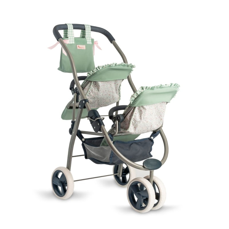 Podwójna spacerówka dla lalek do 46 cm z kolekcji Cloe umożliwia zabranie na spacer dwóch lalek oraz ustawienie siedzisk w różnych kierunkach. Trójkołowy, ze śliczną torbą oraz siatką na akcesoria w zestawie, jest wygodny w użytkowaniu. Można go złożyć i zabrać ze sobą w podróż. Dzięki wysokiej jakości wykonania i stabilności wózek jest bezpieczny i wygodny w użytkowaniu.