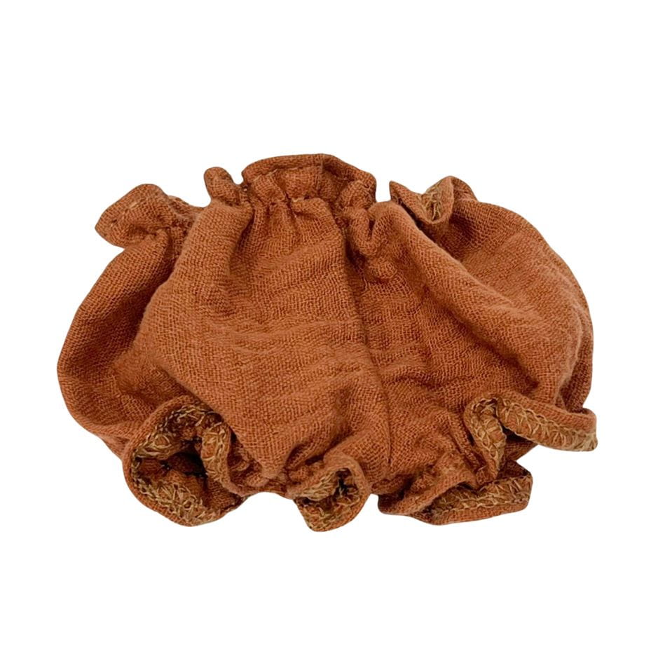 Piękne muślinowe bloomersy Cynamon uszyte specjalnie dla hiszpańskich lalek Miniland Baby 21 cm. Pasują również na lalki Paola Reina Peques 21 cm i Paola Reina Amigas 32 cm.