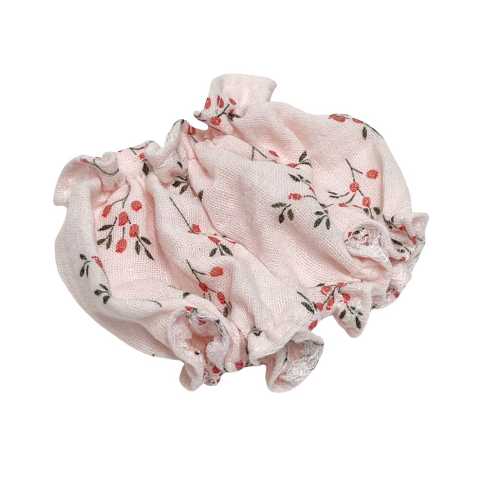 Piękne muślinowe bloomersy Gałązka na różowym uszyte specjalnie dla hiszpańskich lalek Miniland Baby 21 cm. Pasują również na lalki Paola Reina Peques 21 cm i Paola Reina Amigas 32 cm.