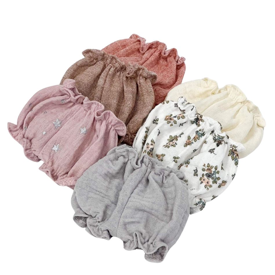 Bloomersy muślinowe dla lalki Miniland 21 cm, Paola Reina Peques 21 cm i Paola Reina Amigas 32 cm - Rose