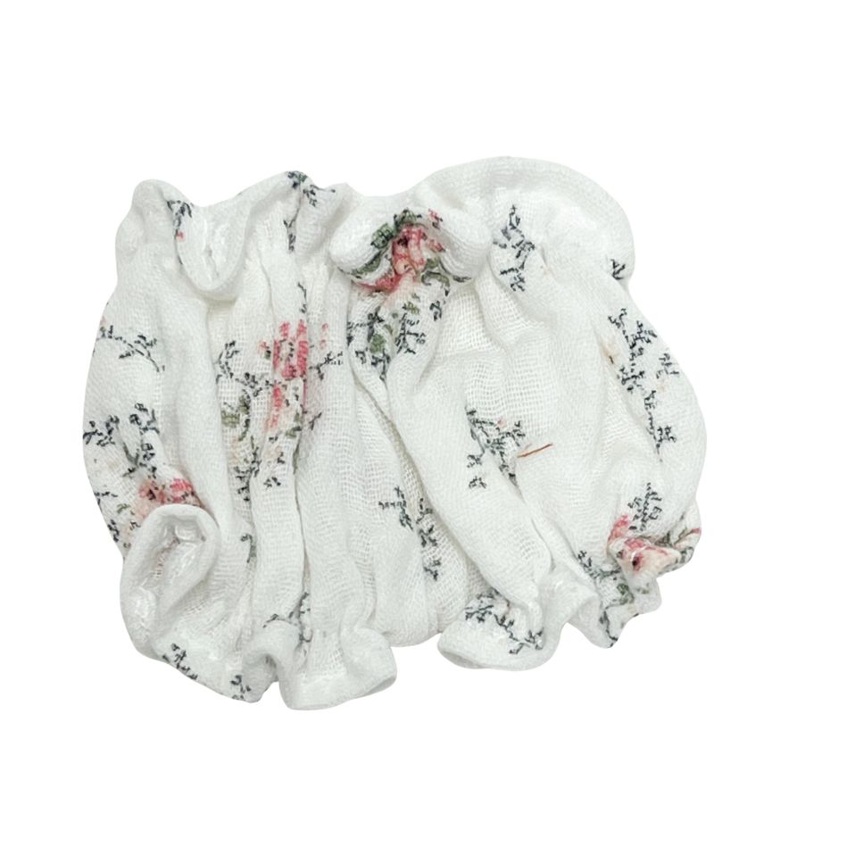 Bloomersy muślinowe dla lalki Miniland 21 cm, Paola Reina Peques 21 cm i Paola Reina Amigas 32 cm - białe w różowe kwiaty