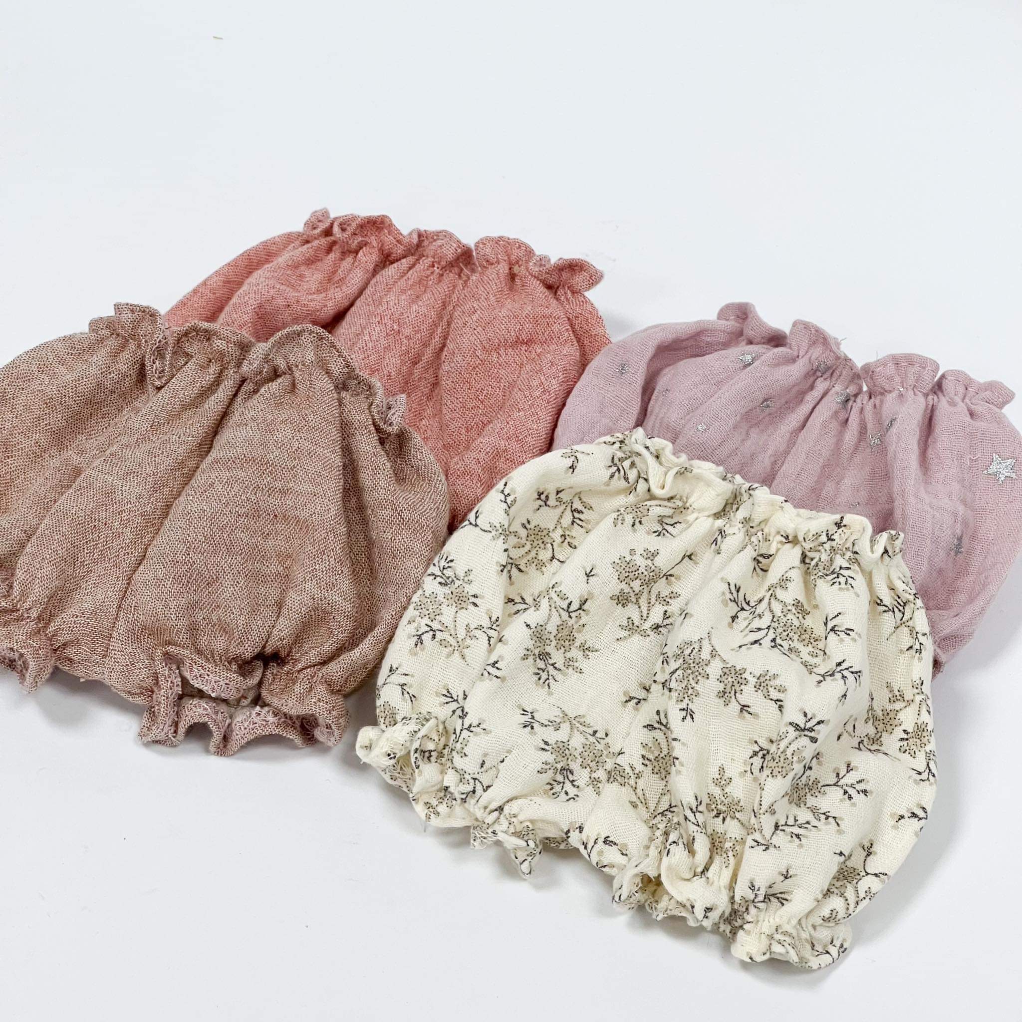 Bloomersy muślinowe kremowe Gloria uszyte specjalnie dla hiszpańskich lalek Miniland 38 cm. Pasują również na lalki Miniland 32 cm, Minikane 34 cm i lalki Paola Reina 34 cm.
