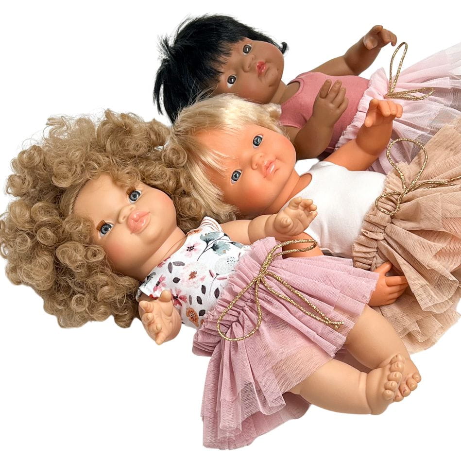 Bawełniane body w kolorze nude uszyte specjalnie dla hiszpańskich lalek Miniland 38 cm. Pasuje również na lalki Minikane 34 cm i lalki Paola Reina 34 cm.