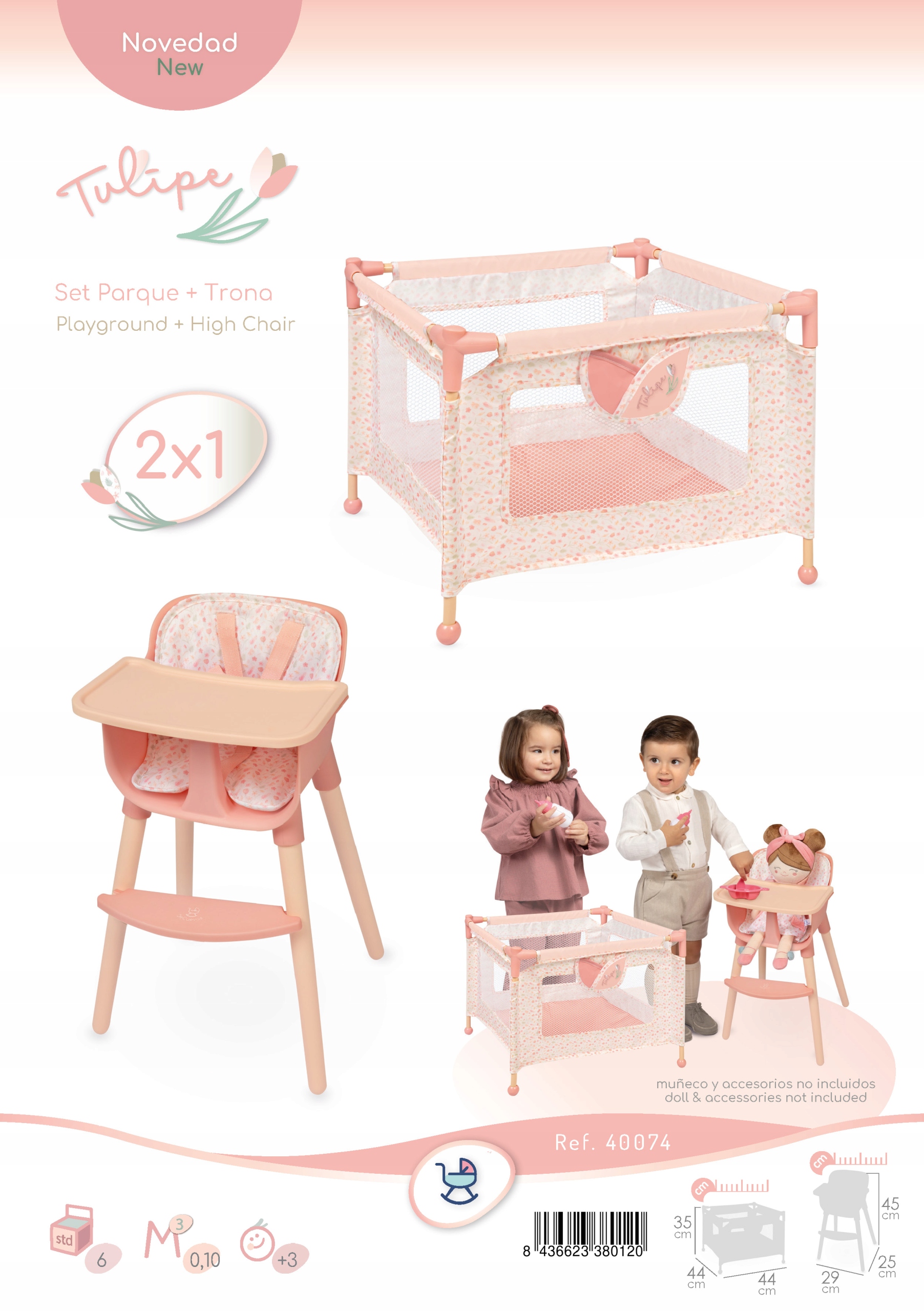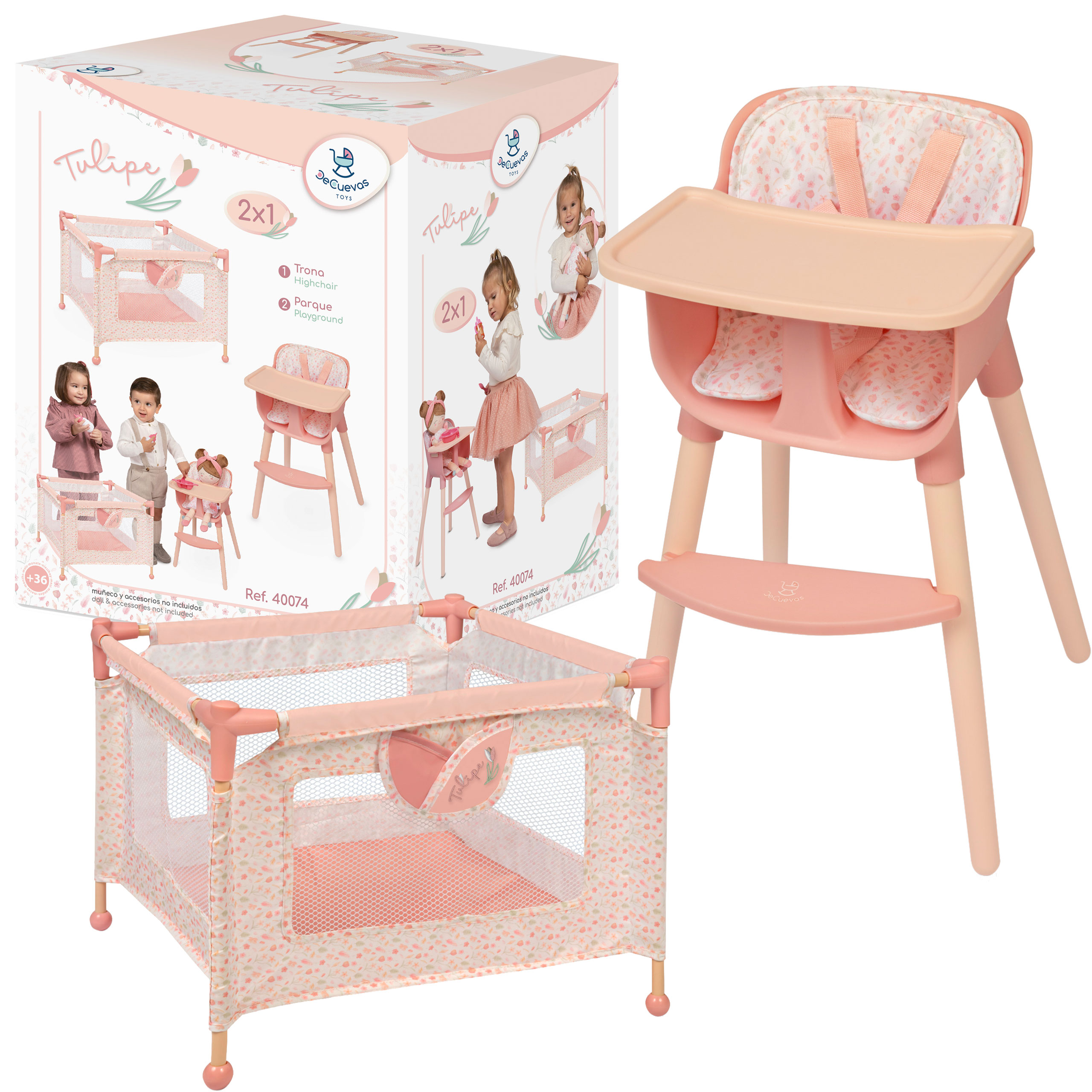 DeCuevas Toys Krzesełko do karmienia i łóżeczko 2w1 dla lalki 40074 Tulipe M