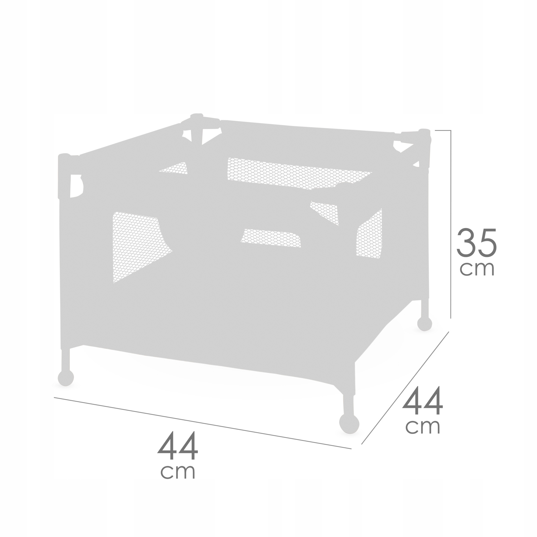 Wymiary łóżeczka: wysokość całkowita ok. 35 cm, długość ok. 44 cm, szerokość ok. 44 cm.