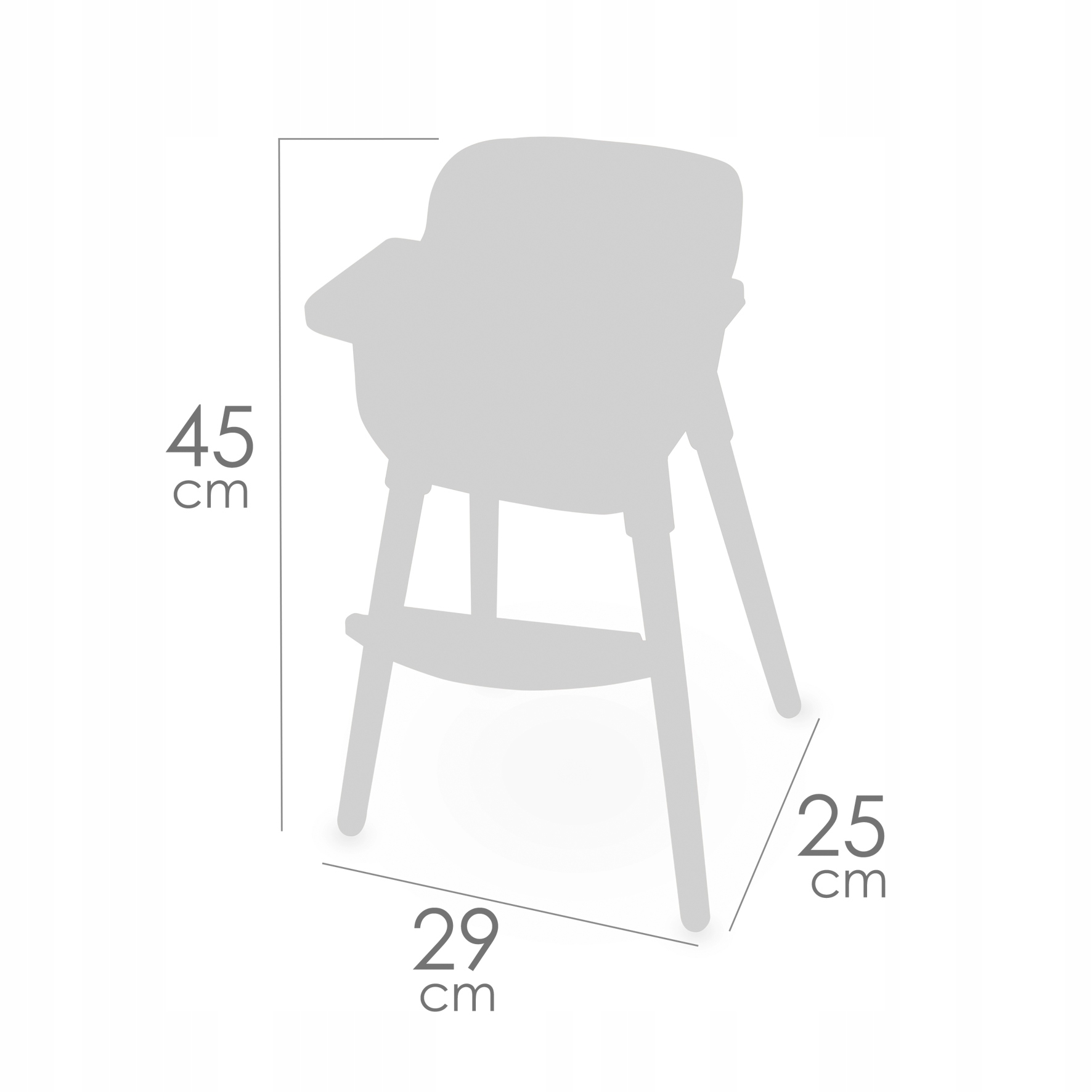 Wymiary krzesełka: wysokość całkowita ok. 45 cm, długość ok. 25 cm, szerokość ok. 29 cm.