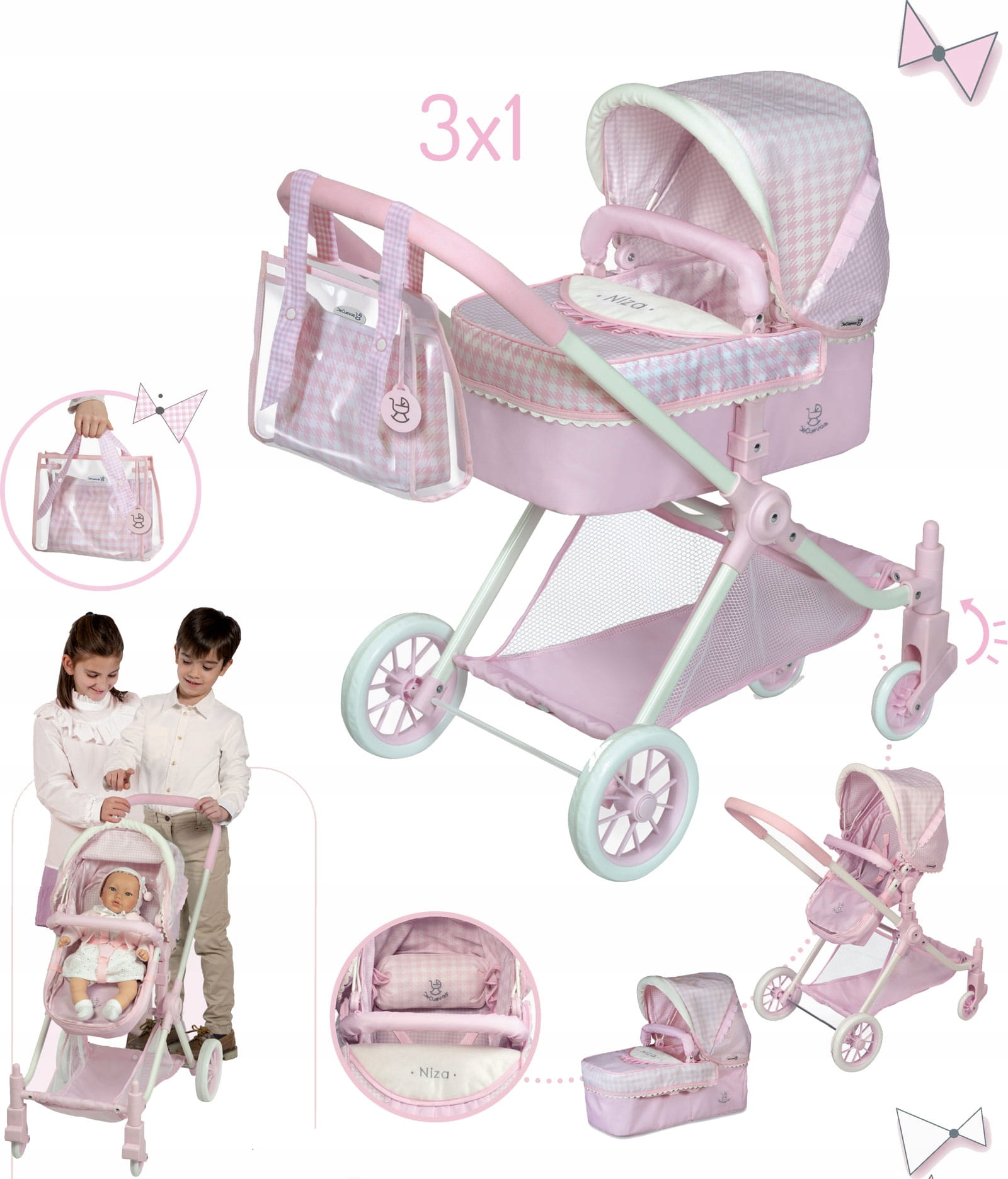 DeCuevas Toys Wózek 3w1 dla lalek 80746 Niza