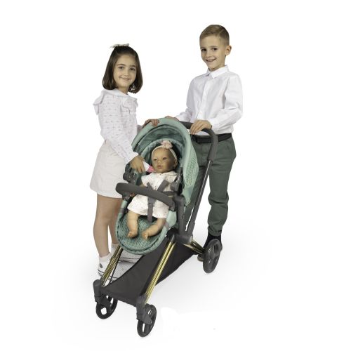 Model Capriccio 81773 od renomowanej hiszpańskiej marki DeCuevas Toys jest w pięknej kolorystyce zieleni, szarego i złota. Do wózeczka można zabrać lalę lub ulubione misie na ekscytującą wycieczkę. Lekki, składany model jest łatwy w transporcie i wygodny w użytkowaniu.