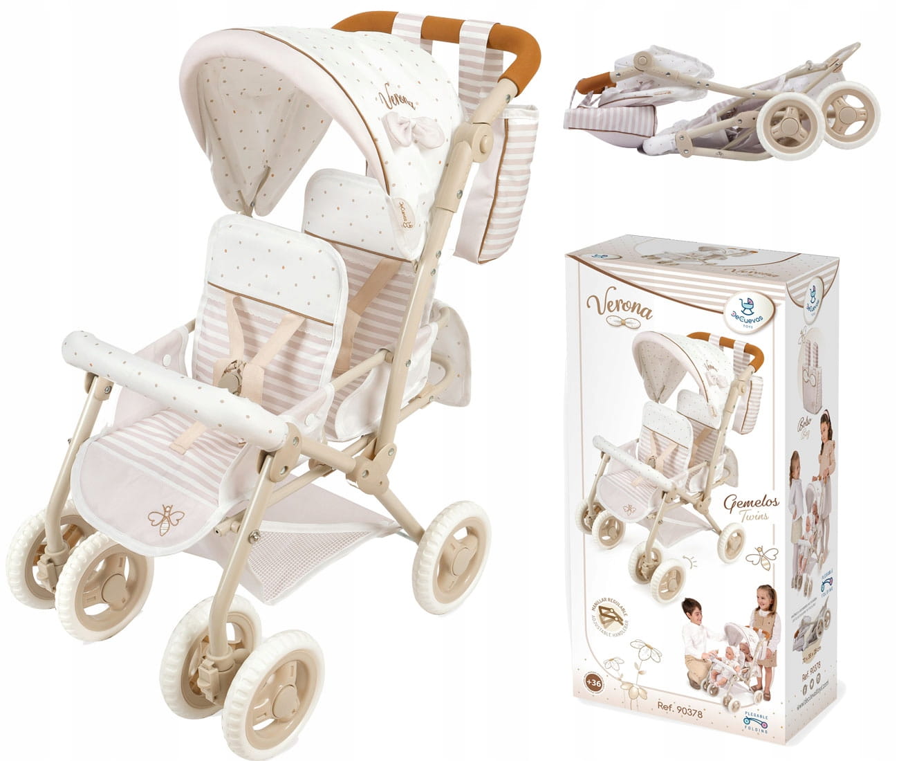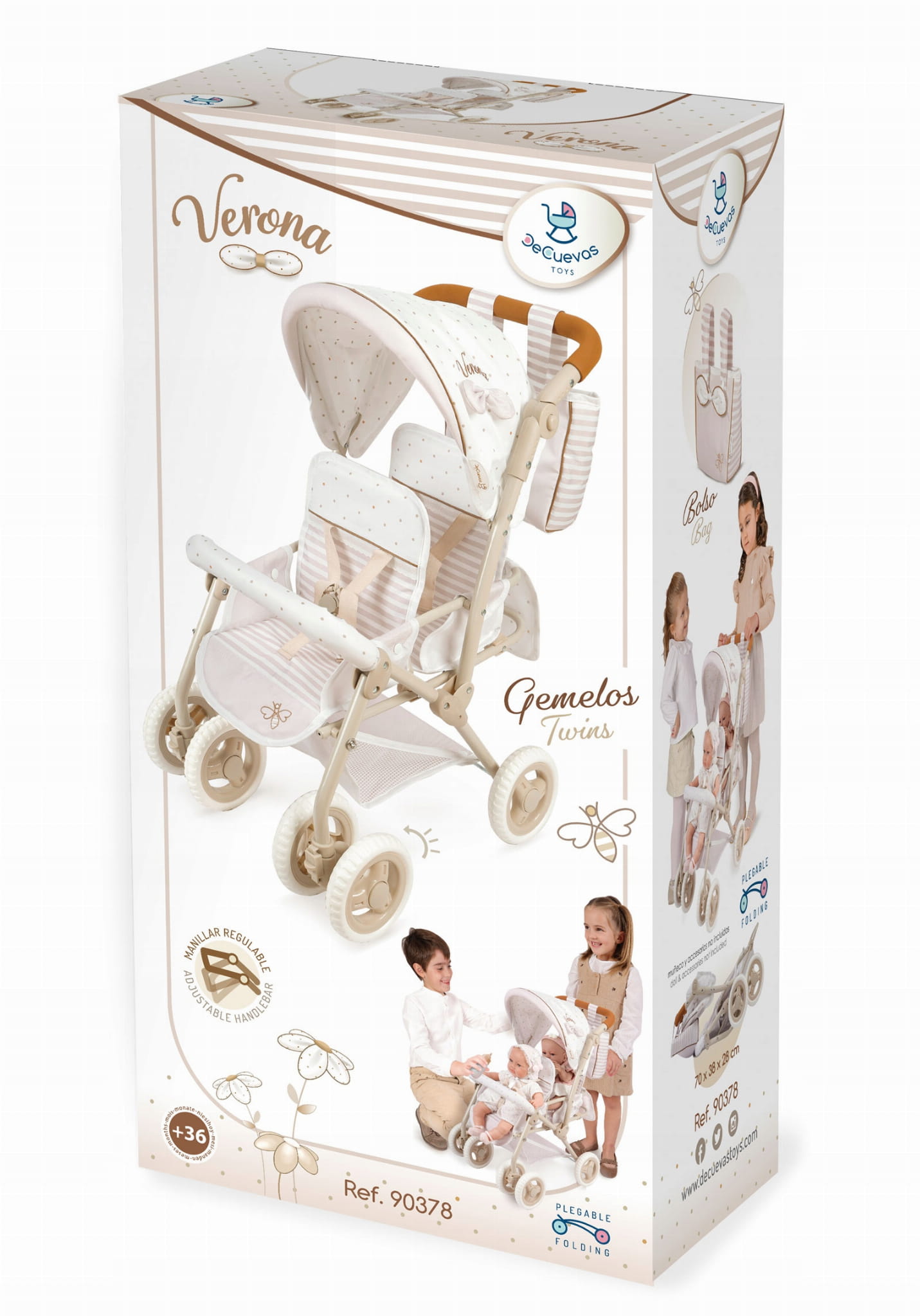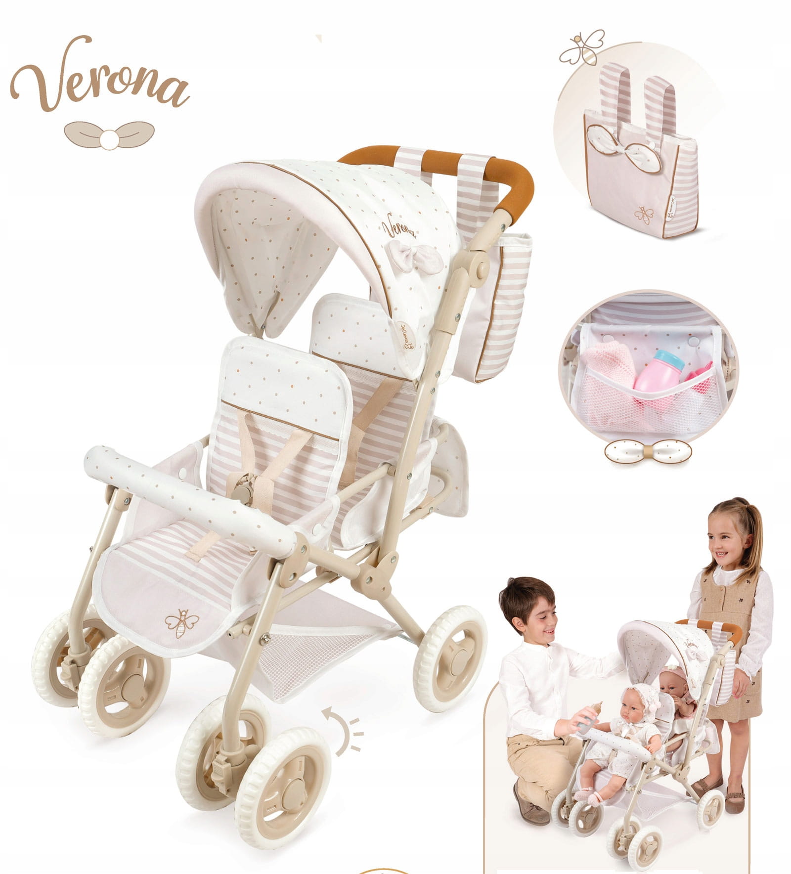 Model Verona 90378 to jedyna w swoim rodzaju propozycja z pięknej kolekcji od renomowanej hiszpańskiej marki DeCuevas Toys. Podwójna spacerówka z pewnością uatrakcyjni spacery i aktywności na świeżym powietrzu. Dziecko może zabrać dwie lalki naraz! Lekki, składany model jest łatwy w transporcie i wygodny w użytkowaniu.