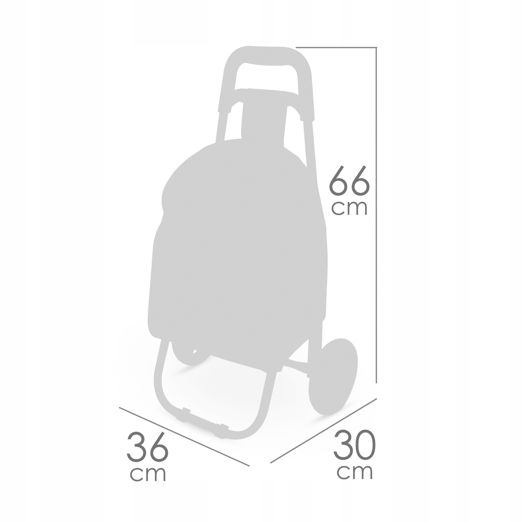 Wymiary wózka: wysokość całkowita ok. 66 cm, długość ok. 30 cm, szerokość ok. 36 cm.