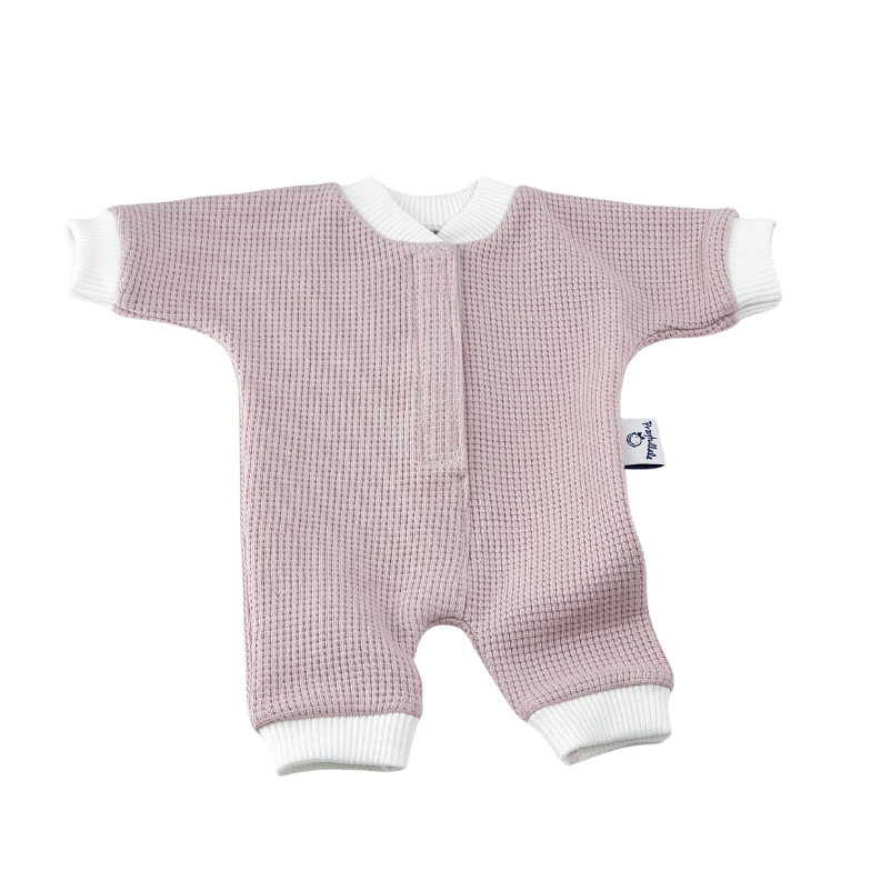 Bawełniany kombinezon - piżamka w kolorze jasnego różu uszyty specjalnie dla hiszpańskich lalek Miniland 38 cm. Pasuje również na lalki Minikane 34 cm i lalki Paola Reina 34 cm.