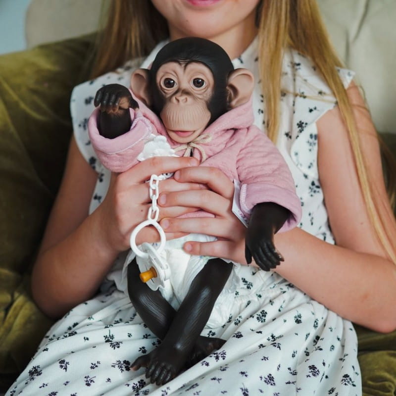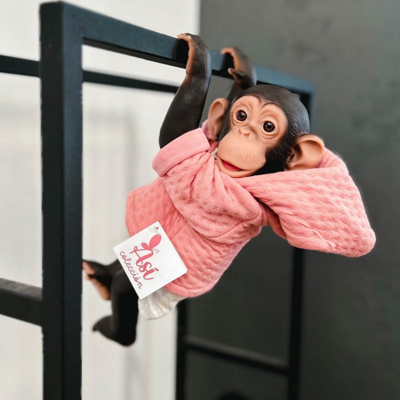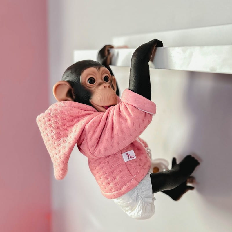 LOLA - to niesamowicie urocza małpka z serii Animal Reborn. W całości wykonana jest z przyjemnego w dotyku, miękkiego, pachnącego wanilią winylu. Zaznaczone fałdki na skórze, linie papilarne, rzeźbienia imitujące sierść na ciele powodują, że małpka wygląda bardzo realistcznie. Ma ruchome rączki, nóżki i głowę. Siedzi samodzielnie.