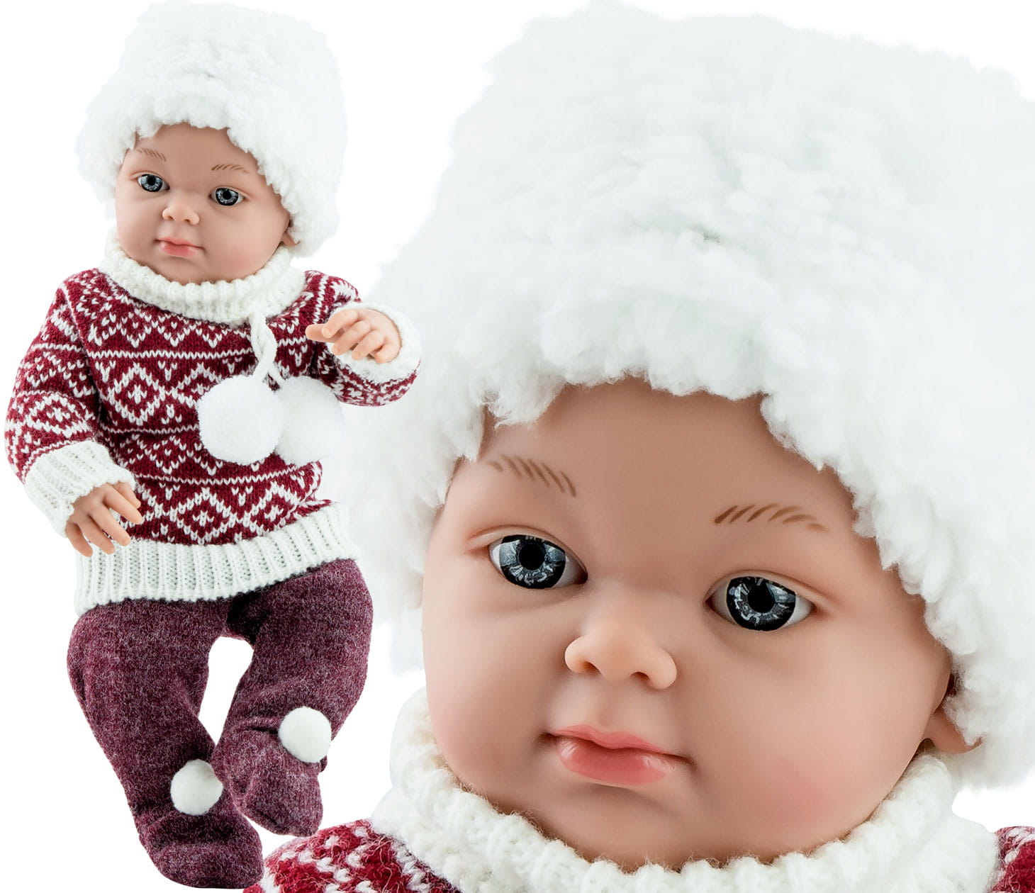 MINIPIKOLINO - to laleczka bobasek o delikatnej, subtelnej urodzie. Ma zaznaczoną płeć - chłopiec. W całości wykonana jest z przyjemnego w dotyku winylu. Na główce ma rzeźbienia, które przypominają krótkie włoski noworodka. Ma ruchome rączki, nóżki i głowę. Siedzi samodzielnie.