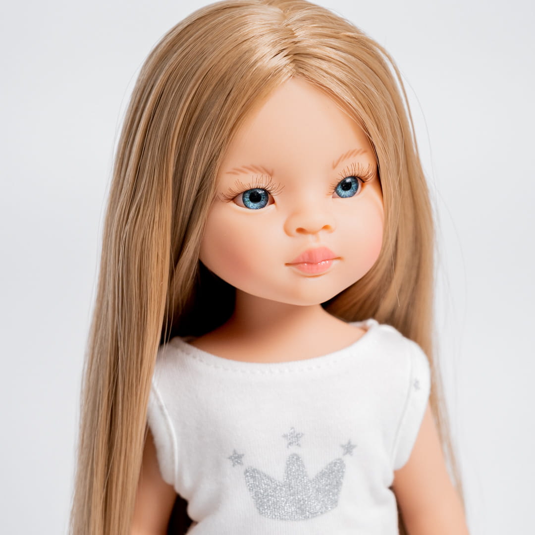 Laleczka jest w piżamce. Można dla niej dobierać ubranka, buciki i akcesoria według własnych preferencji. Laleczka ma piękne włosy, długie rzęsy, zachowane proporcje ciała. Idealnie nadaje się do zabawy, czesania i przebierania. W całości wykonana jest z delikatnie pachnącego i przyjemnego w dotyku winylu. Ma ruchome ręce, nogi i głowę. Stoi i siedzi samodzielnie.