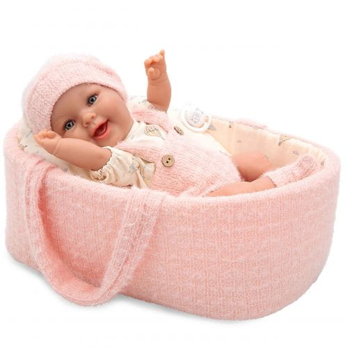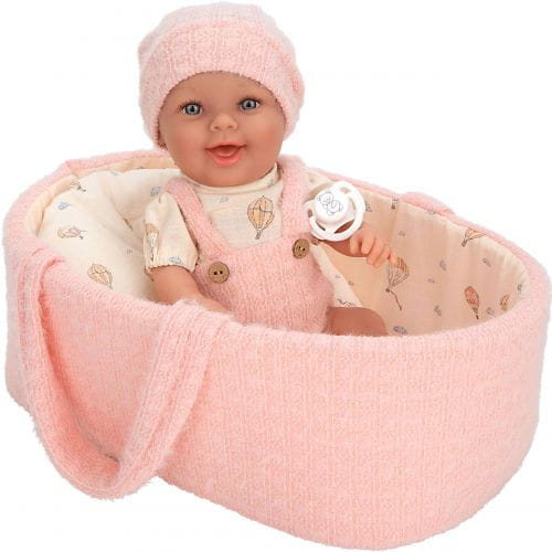 Niezwykle urocza i uśmiechnięta laleczka w ubranku i nosidełko to idealny, kompletny prezent dla małej dziewczynki. W całości wykonana jest z przyjemnego w dotyku winylu. Laleczka ma zaznaczoną płeć - jest dziewczynką. Rzeźbienia na główce imitujące krótkie włoski noworodka, zaznaczone fałdki na skórze i linie papilarne sprawiają, że laleczka wygląda jak prawdziwe niemowlę. Ma ruchome rączki, nóżki i głowę, dzięki temu może zmieniać pozycje i samodzielnie siedzieć.