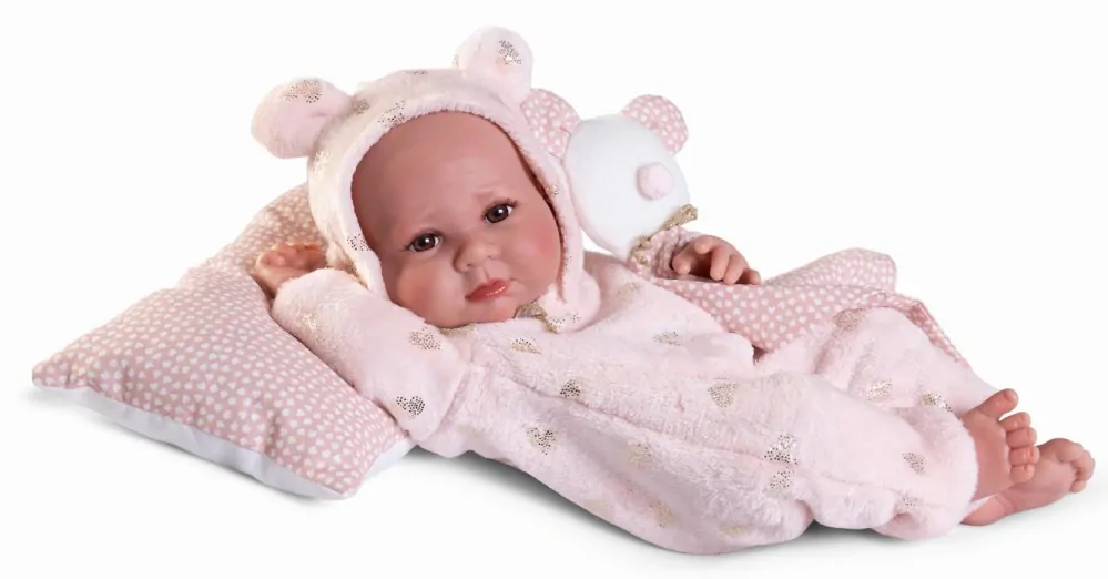 LUCA - to niezwykle uroczy i słodki bobas wyglądający jak prawdziwe dziecko. Ma zaznaczoną płeć - dziewczynka i pępuszek. Na główce ma rzeźbienia imitujące krótkie włoski noworodka. Nóżki i rączki mają linie papilarne, delikatne fałdki i realistycznie wyglądające paznokcie.W kącikach oczu błyszczy imitacja łez. W całości wykonana jest z przyjemnego w dotyku winylu. Ma ruchome rączki, nóżki i głowę. Siedzi samodzielnie.