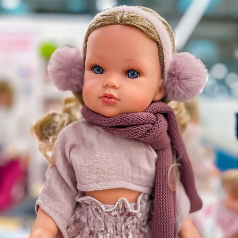 Luksusowe, winylowe lalki hiszpańskie o imieniu Bella mają wiele zwolenniczek na całym świecie. Oprócz ruchomych kończyn posiadają głowę, którą można kręcić zarówno w poziomie jak i w pionie. Model 28326 to śliczna blondynka o długich, kręconych, lśniących włosach i niebieskich oczach, opatrzonych długimi rzęsami i ręcznie malowanymi brwiami. Lśniące usta i rumieńce na policzkach dodają lali uroku. Lalka idealnie nadaje się do zabawy, czesania i przebierania. Wykonana w całości z przyjemnego w dotyku winylu. Stoi i siedzi samodzielnie.