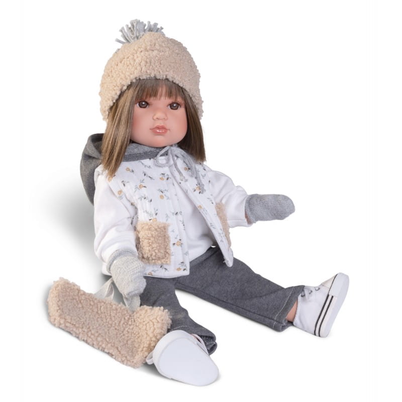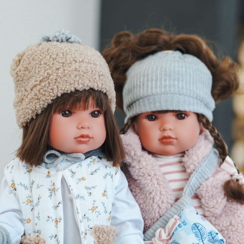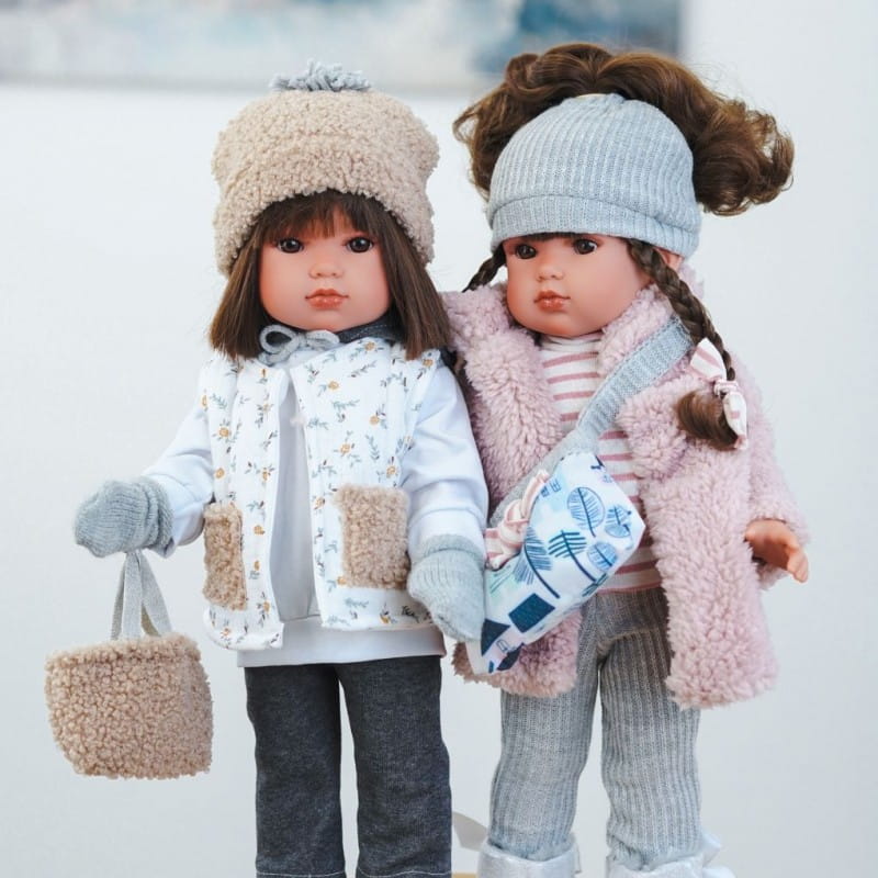 Luksusowe, winylowe lalki hiszpańskie o imieniu Bella mają wiele zwolenniczek na całym świecie. Oprócz ruchomych kończyn posiadają głowę, którą można kręcić zarówno w poziomie jak i w pionie. Model 28329 to śliczna brunetka o prostych, lśniących włosach i brązowych oczach, opatrzonych długimi rzęsami i ręcznie malowanymi brwiami. Lśniące usta i rumieńce na policzkach dodają lali uroku. Lalka idealnie nadaje się do zabawy, czesania i przebierania. Wykonana w całości z przyjemnego w dotyku winylu. Stoi i siedzi samodzielnie.