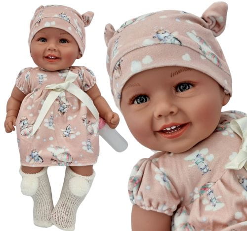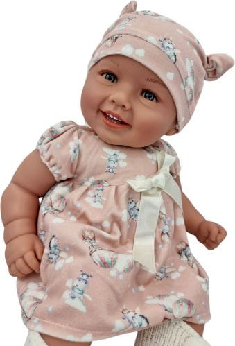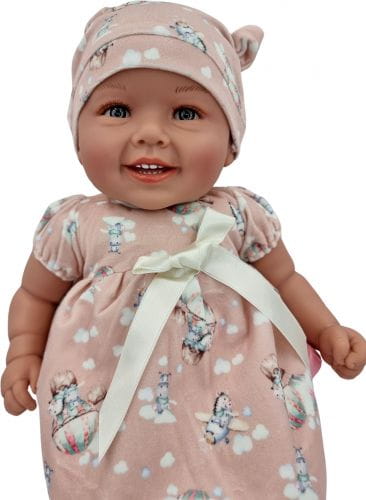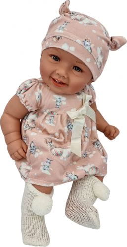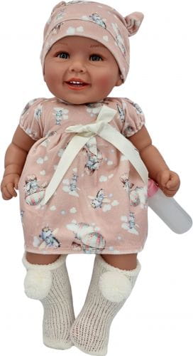 Diana lalka bobas o wysokości 47 cm. Tułów miękki, materiałowy. Głowa, rączki i nóżki wykonane są z wysokiej jakości słodko pachnącego winylu. Na główce ma rzeźbienia imitujące krótkie włoski. W zależności od ubranka może odgrywać rolę dziewczynki lub chłopca. Laleczka posiada moduł dźwiękowy - mówi i śpiewa dziecięcym głosem po polsku. Baterie startowe zawarte są w zestawie (3xLR44 1,5V).