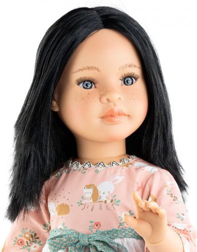 Lalka z serii Las Reinas to piękna, duża 60 cm lalka z ruchomymi stawami. Ma gęste włosy, długie rzęsy, proporcjonalne ciało, ruchome ręce, nogi i głowę. Dodatkowo zgina ręce w łokciach i nogi w kolanach, a także może obracać dłonie w nadgarstkach i stopy w kostkach. Idealnie nadaje się do zabawy, czesania i przebierania. Laleczka w całości wykonana jest z delikatnie pachnącego i przyjemnego w dotyku winylu. Stoi i siedzi samodzielnie.