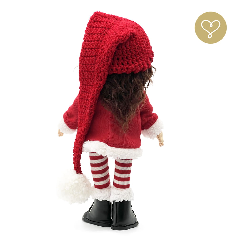 Holly to wyjątkowa materiałowa lalka stworzona z pasją i dbałością o każdy szczegół. Ma około 38 cm wzrostu. Uszyta jest z najwyższej jakości trykotu bawełnianego i wypełniona owatą poliestrową. Laleczka ubrana jest w czapeczkę, sweterkową tunikę, rajstopy w paseczki i buciki. Na szczególną uwagę zasługują włosy lalki: są z naturalnej Alpaki, uznawanej za najlepszy materiał w profesjonalnym lalkarstwie. W odróżnieniu od włosów syntetycznych można je kręcić lokówką, prostować prostownicą, nie zawierają lanoliny, są antyalergiczne, nie chłoną łatwo wilgoci i mniej się elektryzują. Dzięki temu włosy można czesać i stylizować, tworząc różnorodne fryzury.