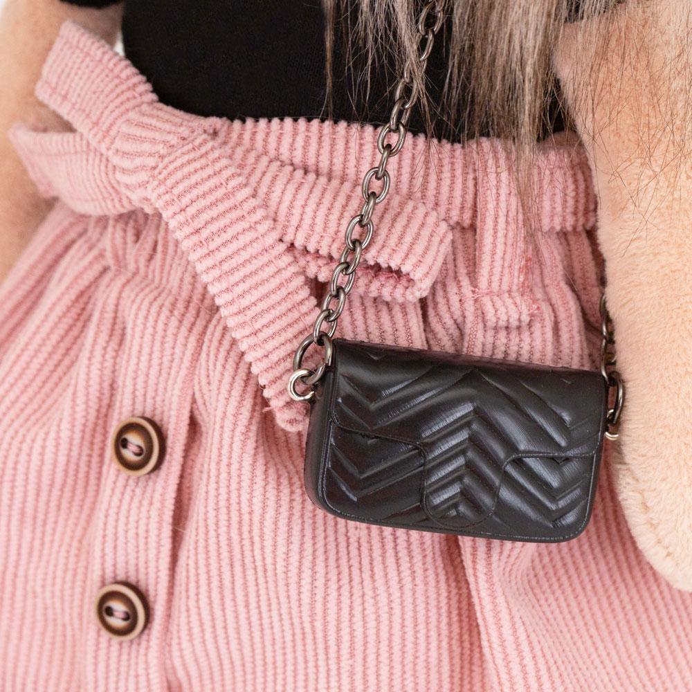 Piesek Yoyo to uroczy jasnobeżowy yorkshire terrier. Zgina łapki (rączki i nóżki). Yoyo ubrana jest w czarny t-shirt, różową spódniczkę z paskiem, na głowie kokardkę, na ramieniu czarną torebkę. Piesek zapakowany jest w pudełko prezentowe. Na spodzie pudełka znajdują się tekturowe elementy do zmontowania wieszaka na ubrania.