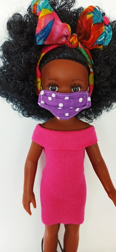 Maseczka dla lalki Amigas 32 cm - fioletowa w białe groszki