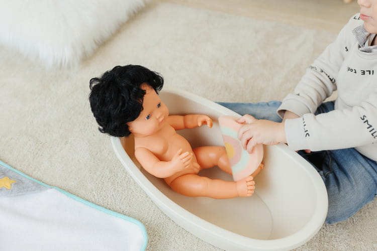 Oryginalne akcesoria Miniland wanienka / wanna z gąbką dla lalki 31100