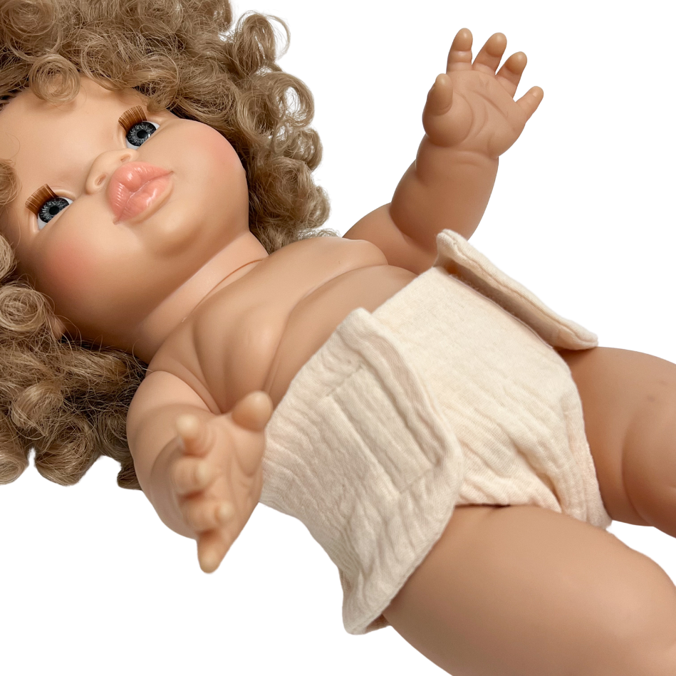 Pieluszki muślinowe dla lalki Miniland 38 cm, Paola Reina 34 cm i Minikane 34 cm