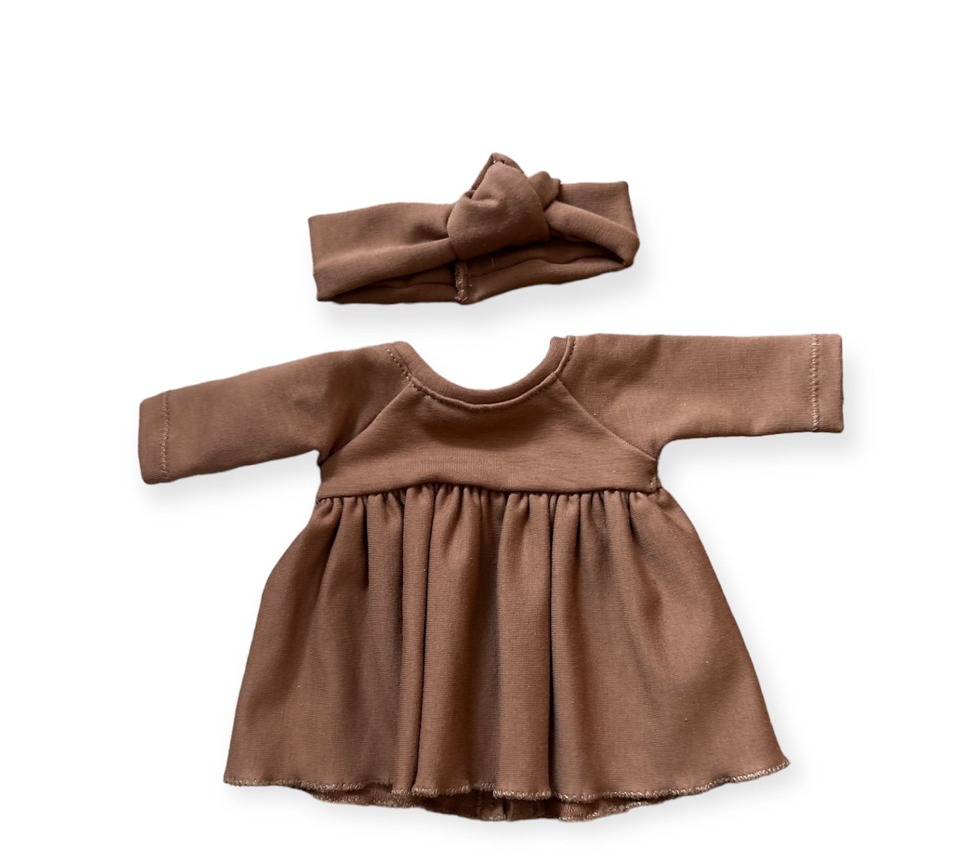 Sukienka i opaska dla lalki Miniland 38 cm, Paola Reina 34 cm i Minikane 34 cm - cynamonowy brąz