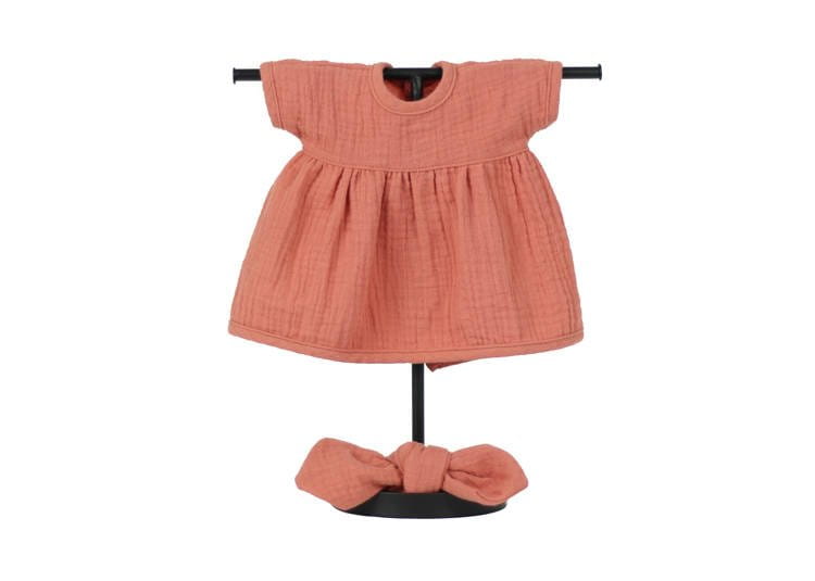 Sukienka muślinowa i opaska dla lalki Miniland 38 cm, Paola Reina 34 cm i Minikane 34 cm - Terra Cotta