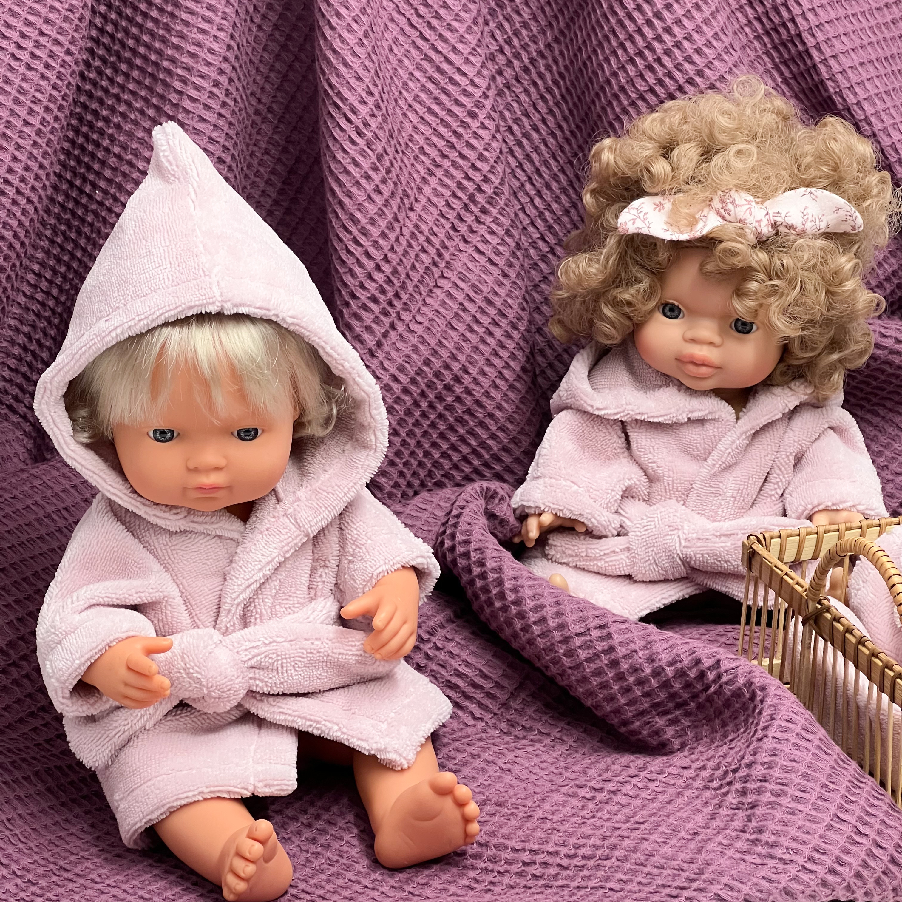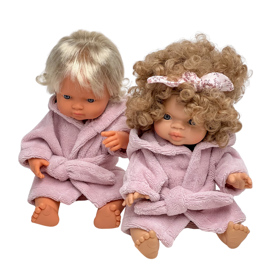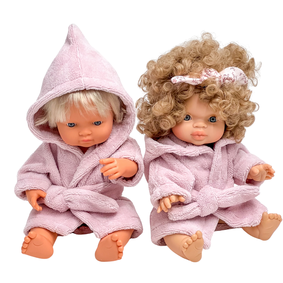 Szlafrok frotte dla lalki Miniland 38 cm, Paola Reina 34 cm i Minikane 34 cm - pudrowy róż